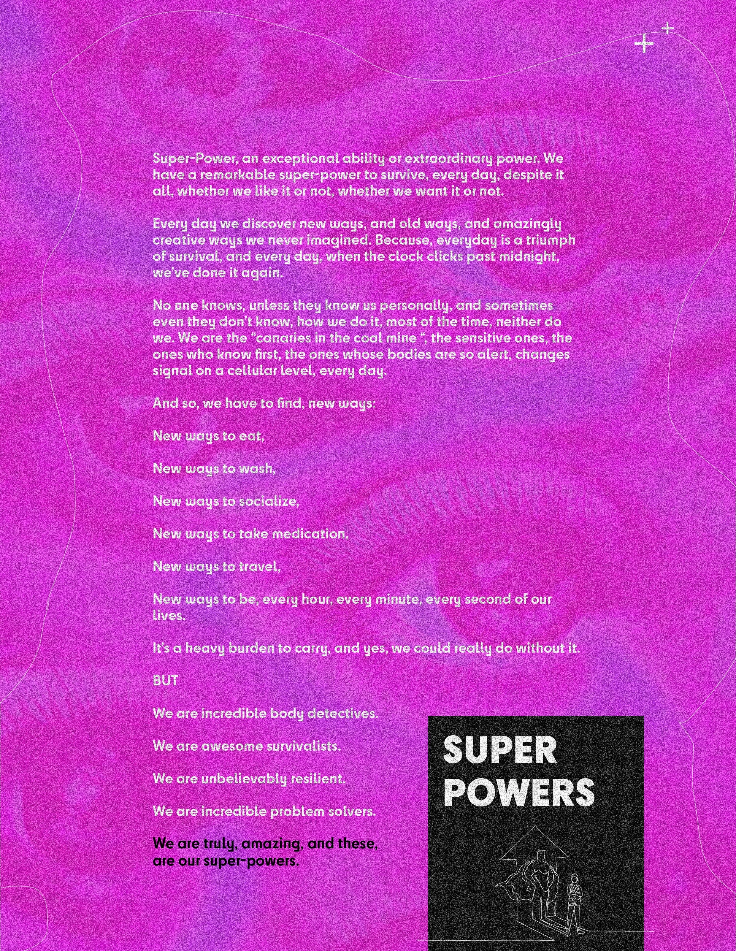 Mimi has been a writer in a variety of ways. She has been song- writer, she is a playwright, and has had two of her plays on in London, and one nominated for an off-west-end award. More recently, Mimi has been writing spoken word poetry. Mimi started to write when chronic illnesses took away her ability to do anything else. Writing is an outlet and expression which she can do when she’s able to, and something that brings her a lot of joy.